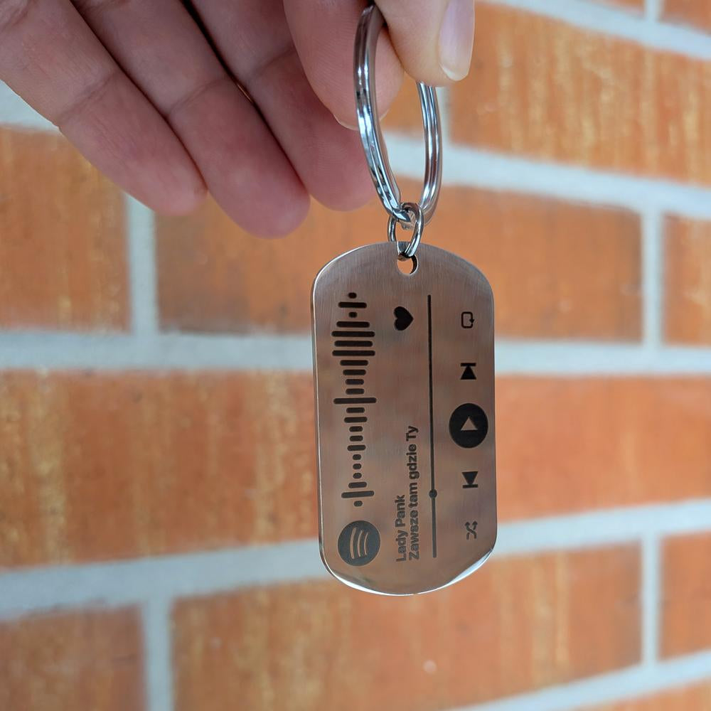 Brelok Spotify to wyjątkowa pamiątka, która zachwyci obdarowaną osobę! Grawerowanie na stali nierdzewnej to upominek na lata.