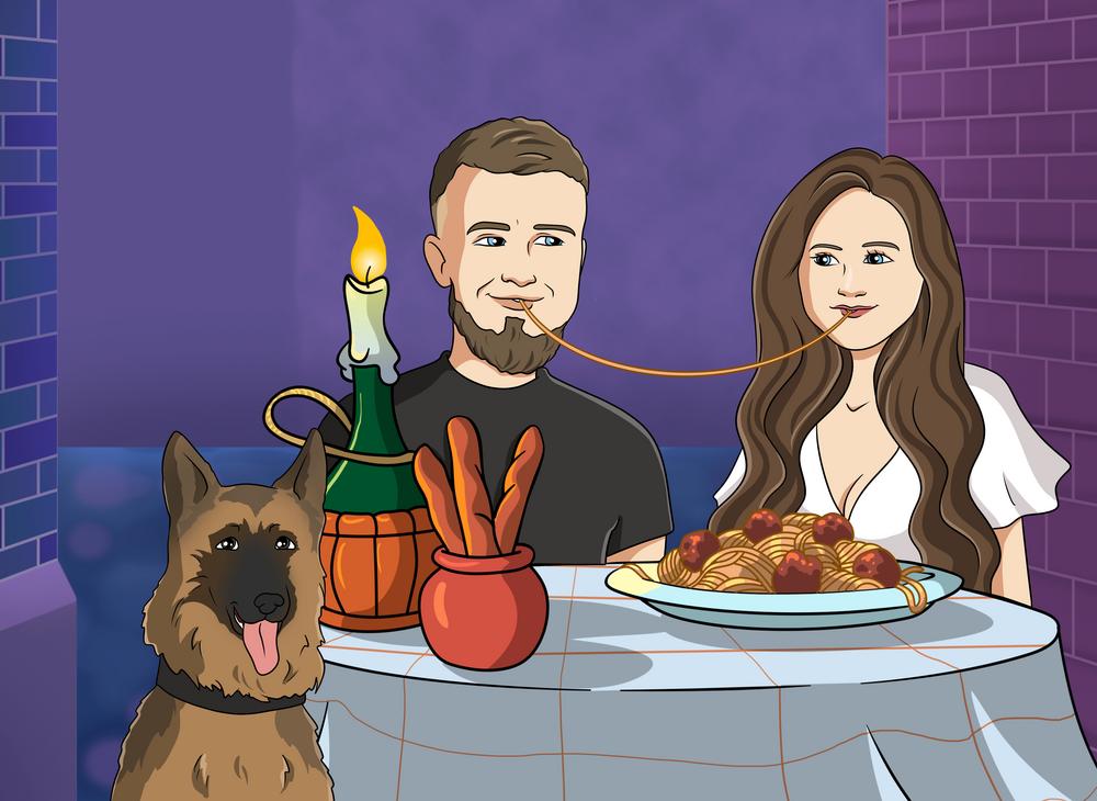 Stworzymy personalizowany portret w stylu filmu Lady and the Tramp (Zakochany kundel) z Twojego zdjęcia!