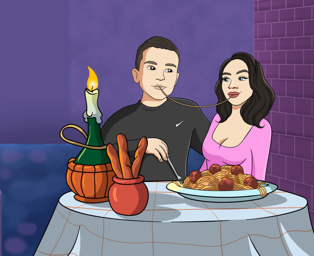 Lady and the Tramp (Zakochany kundel) - personalizowany obraz, cartoonizowany portret