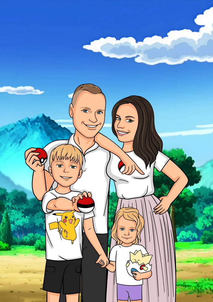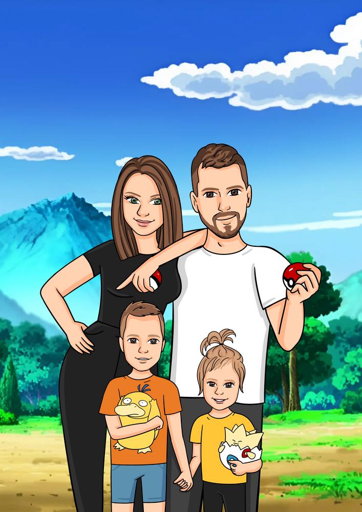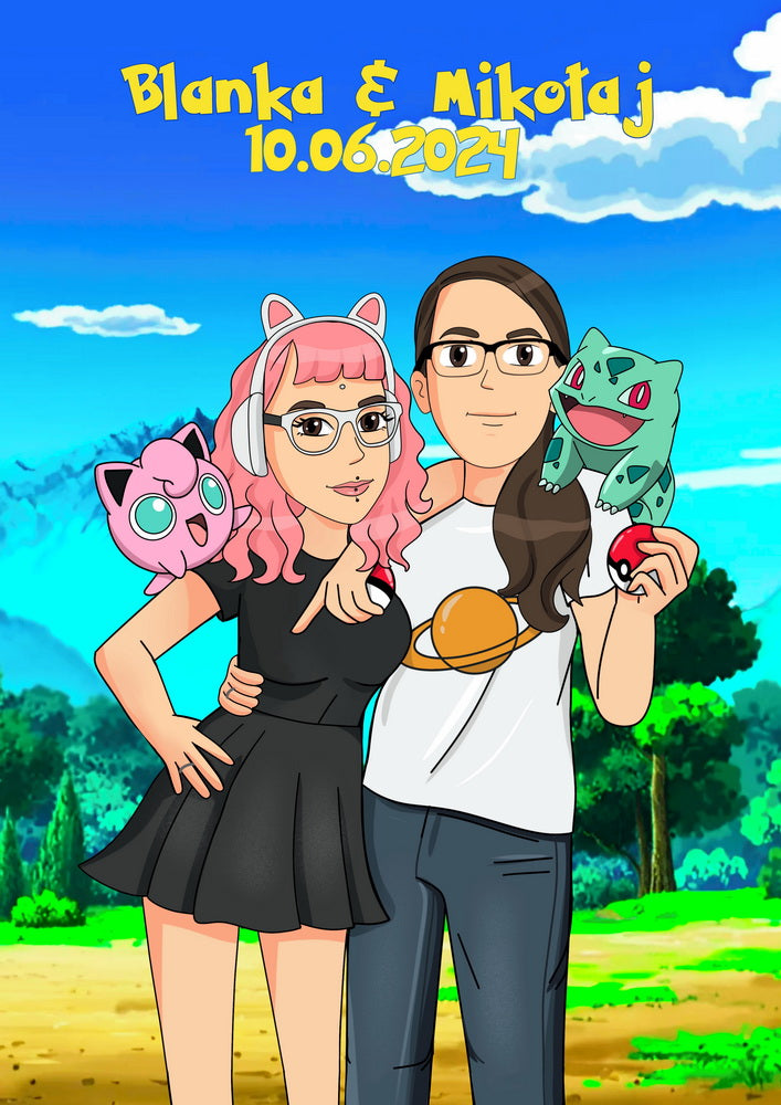 Pokemon - personalizowany obraz, cartoonizowany portret