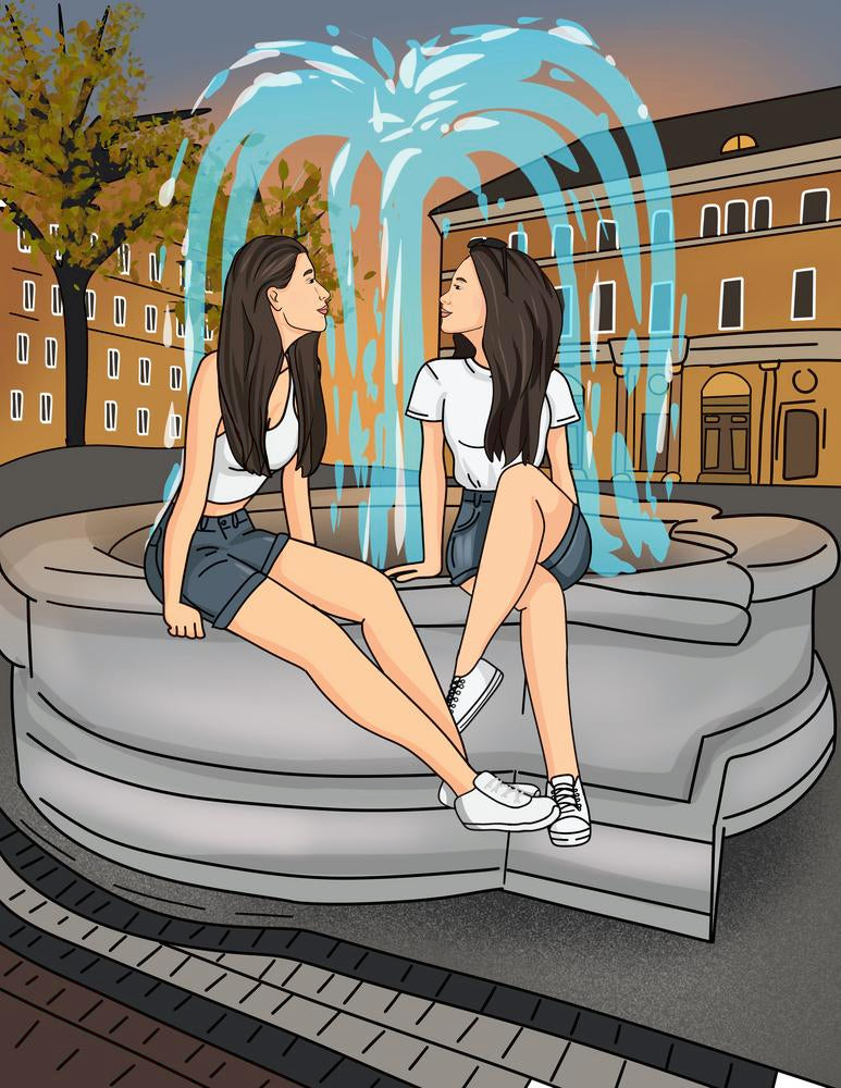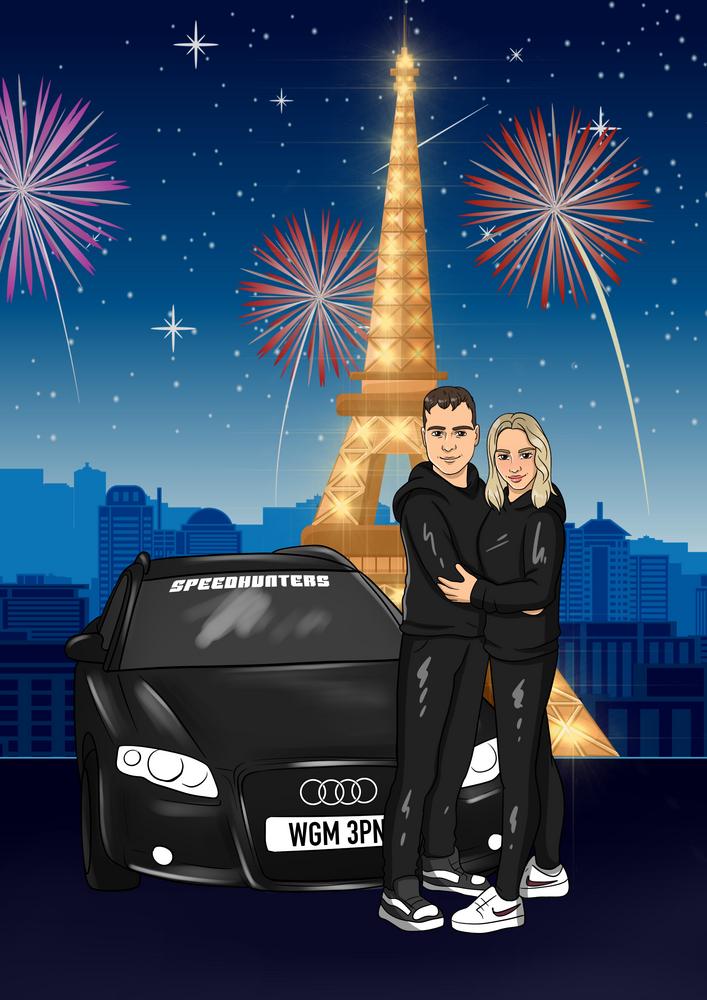 Portret podróżniczy - kreskówkowy personalizowany obraz w miastach