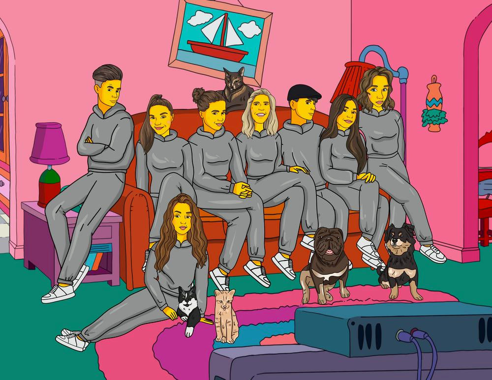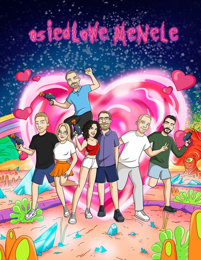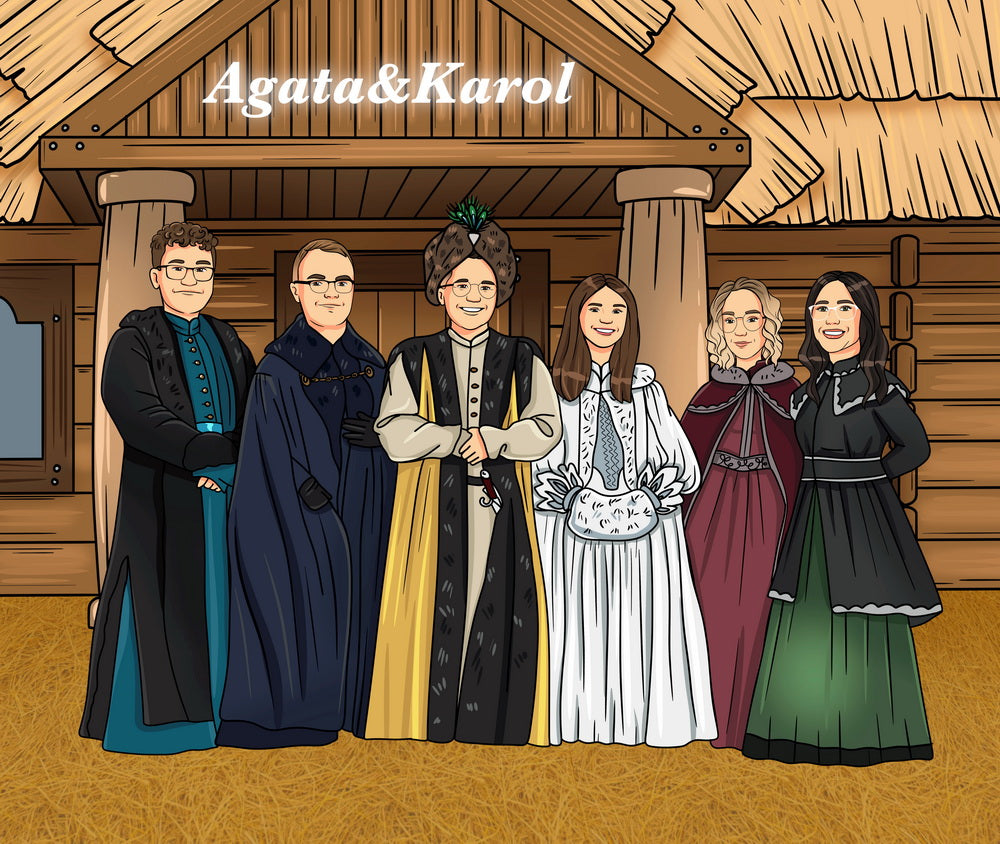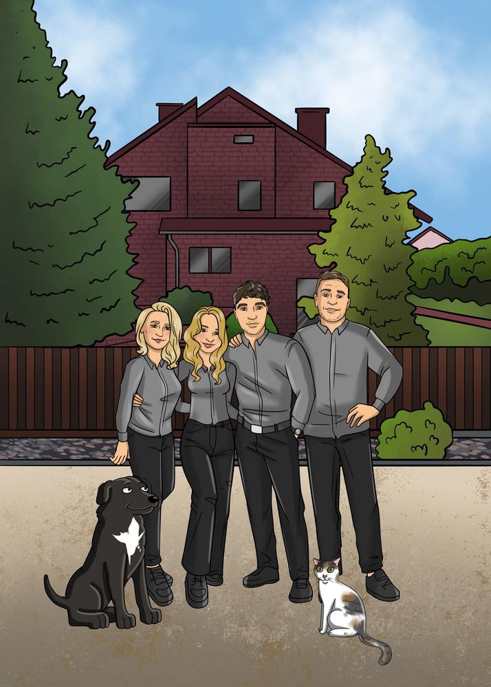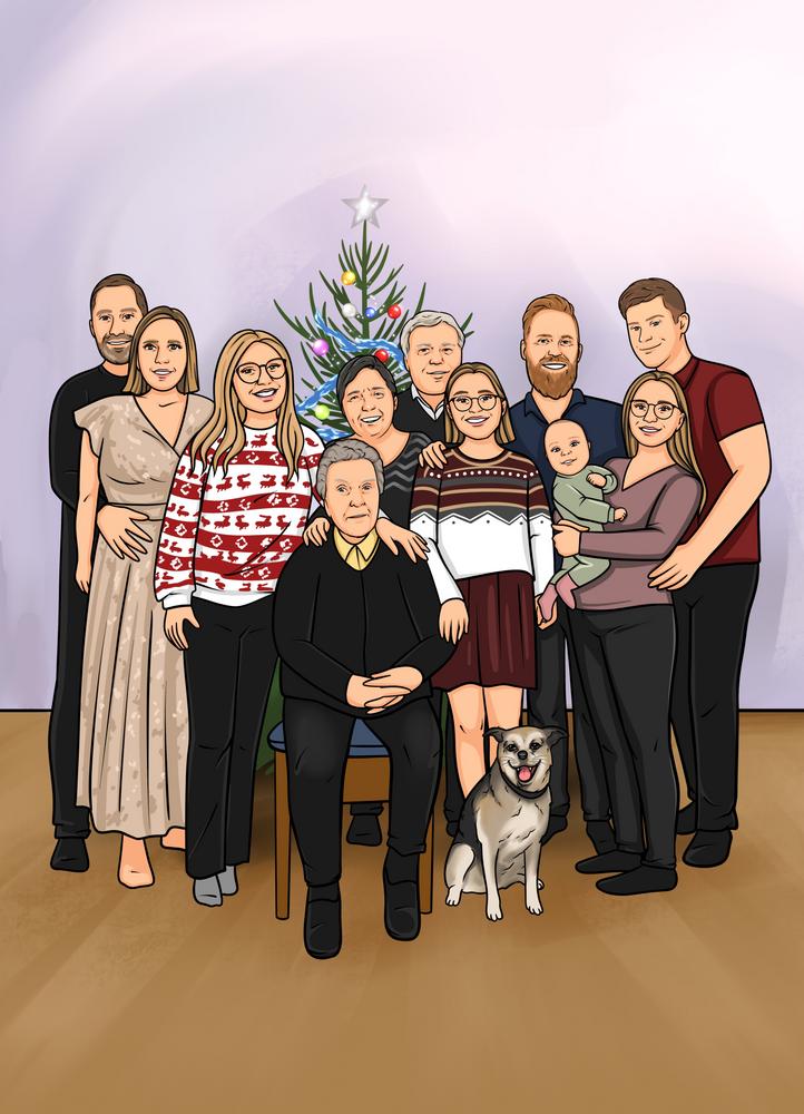 Portret rodzinny, portret z wieloma ludźmi w stylu kreskówki ze zdjęcia