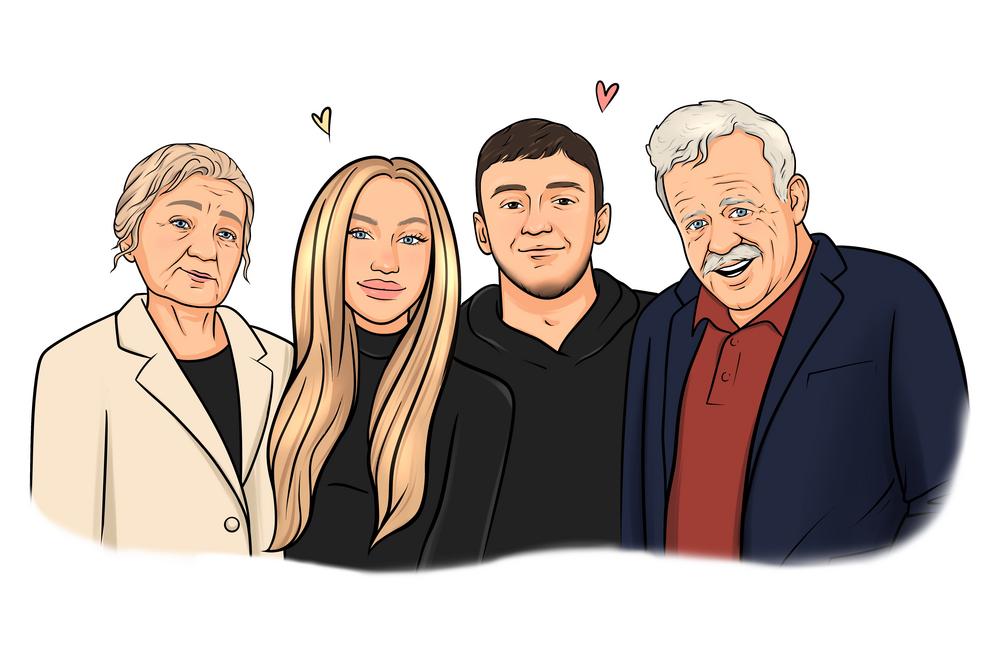 Piękny i wyjątkowy ręcznie rysowany portret dla rodziców - cyfrowy, narysowany na podstawie zdjęć przy użyciu cyfrowego pióra artystycznego i tabletu.