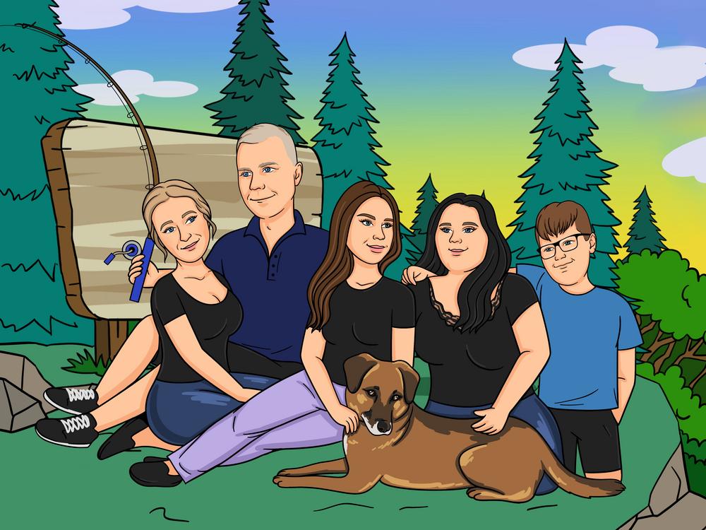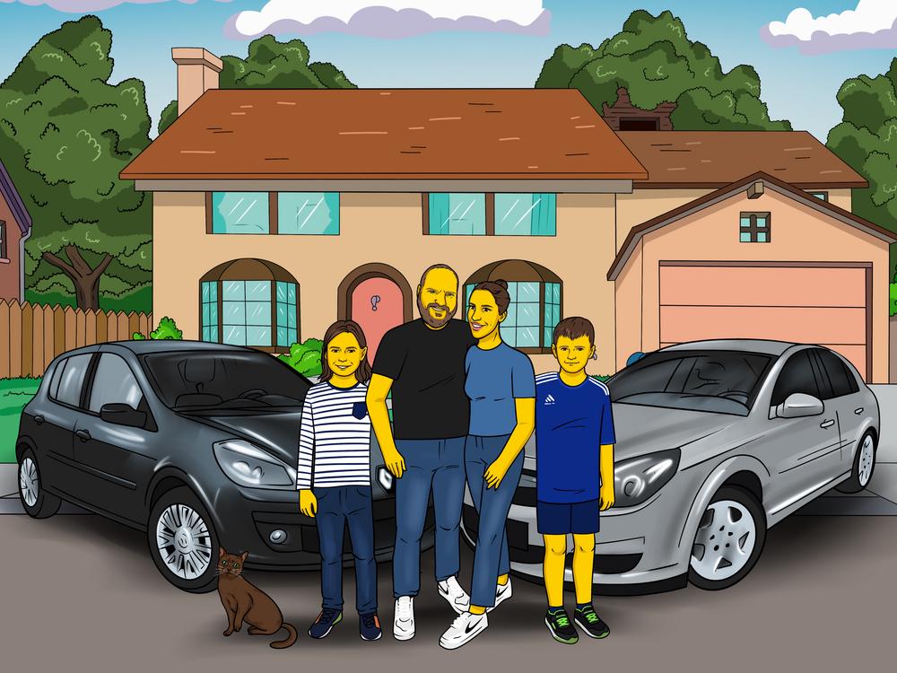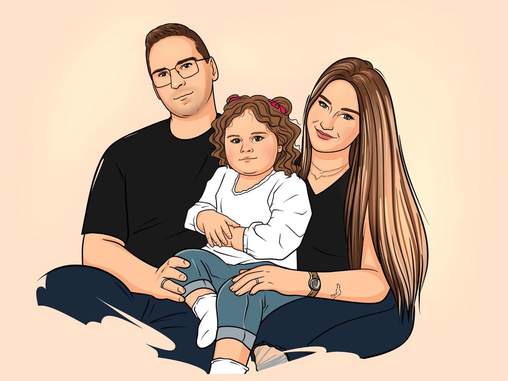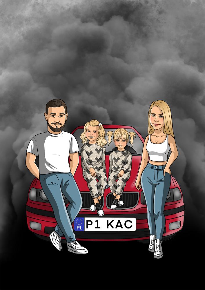 Wzruszający personalizowany portret rodzinny w stylu kreskówki z Twojego zdjęcia!