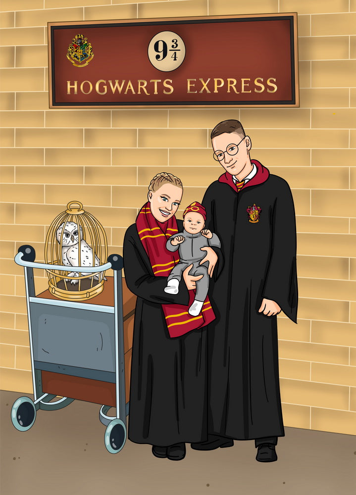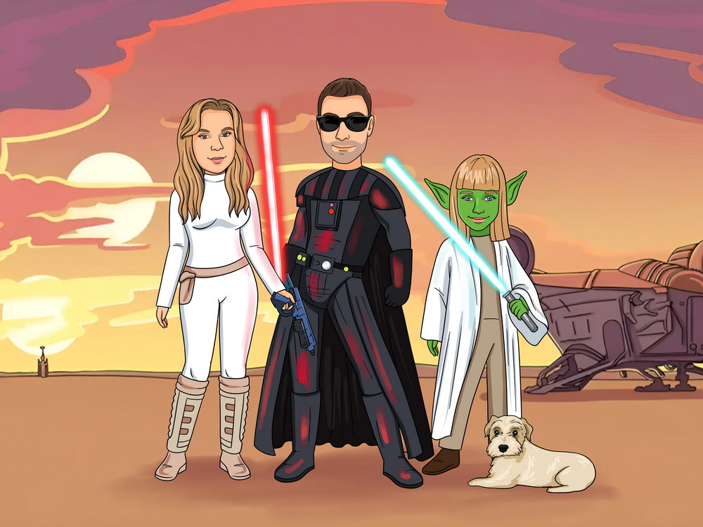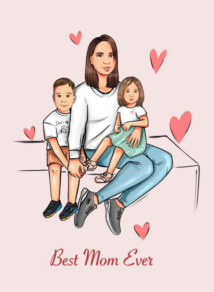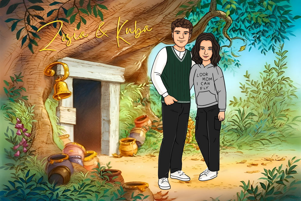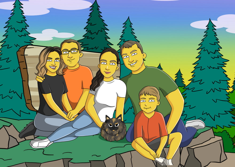 Wzruszający personalizowany portret rodzinny w stylu kreskówki z Twojego zdjęcia!