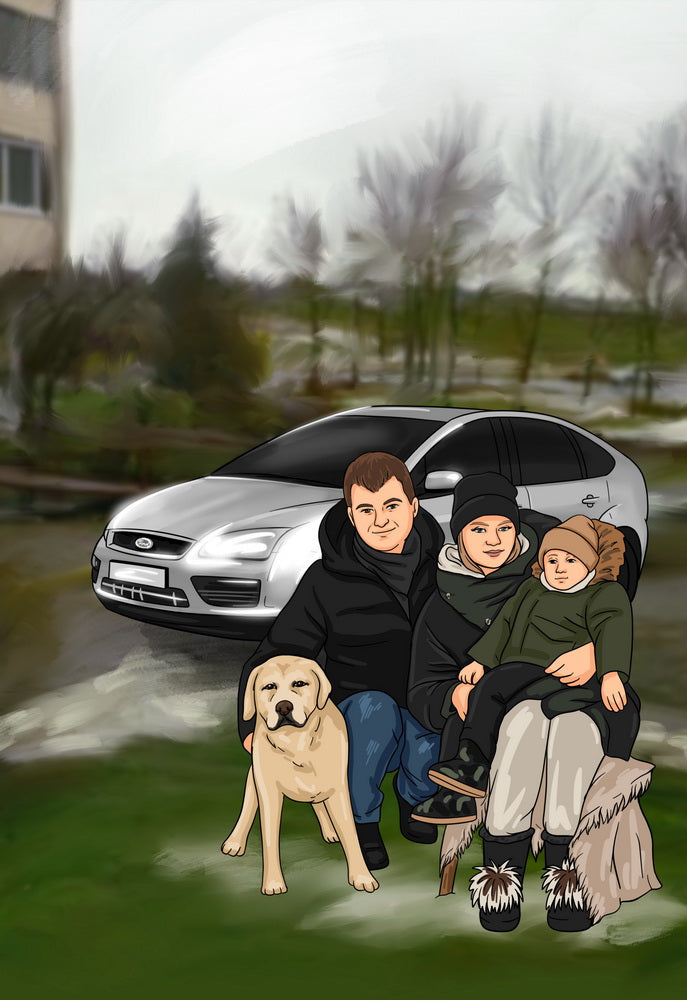 Wybierz rodzaj portretu (tylko wersja elektroniczna lub z nadrukiem), liczbę osób, zwierząt, samochodów oraz inne potrzebne opcje. Dodaj opis i szczegóły zamówienia (ubrania, pozy, inne życzenia). Złóż zamówienie. W ciągu 1-2 dni prześlemy Ci obraz na zatwierdzenie lub ewentualne korekty.