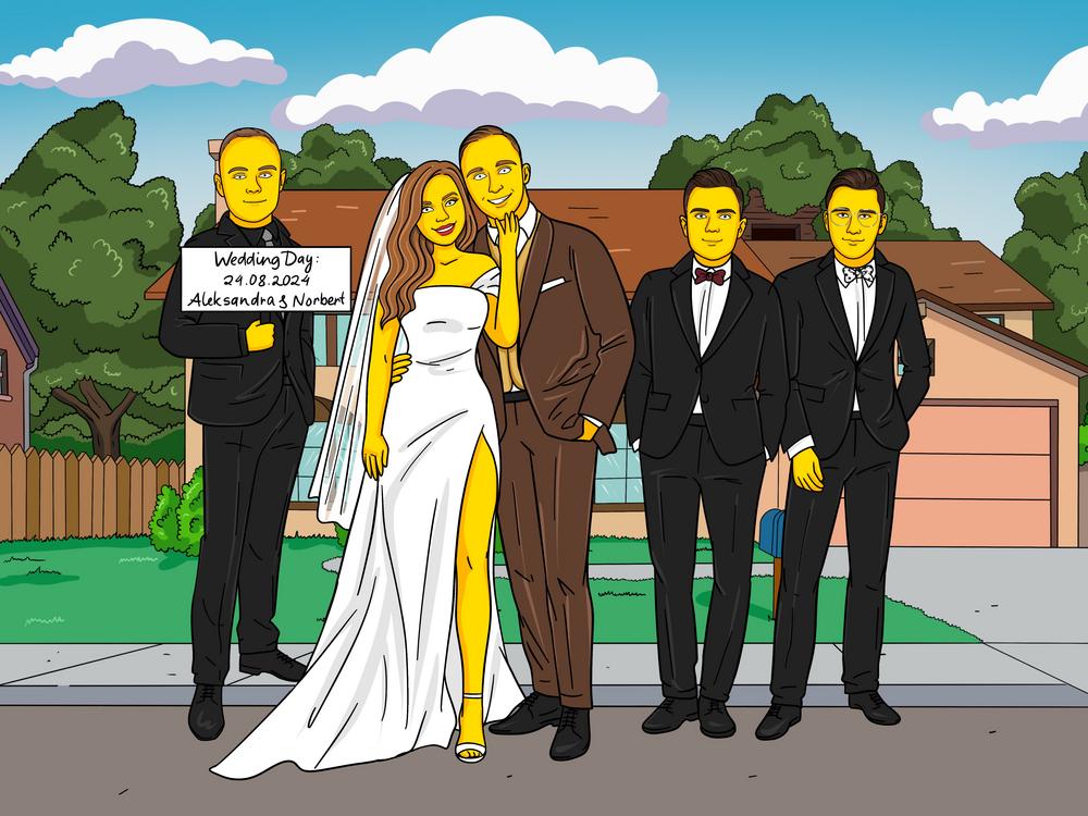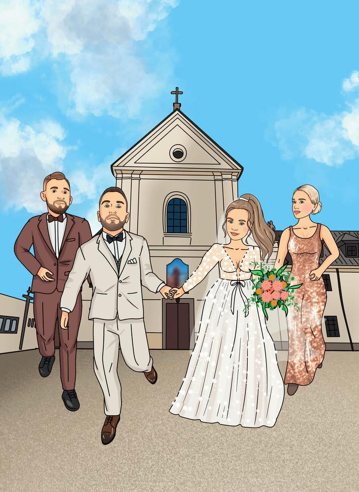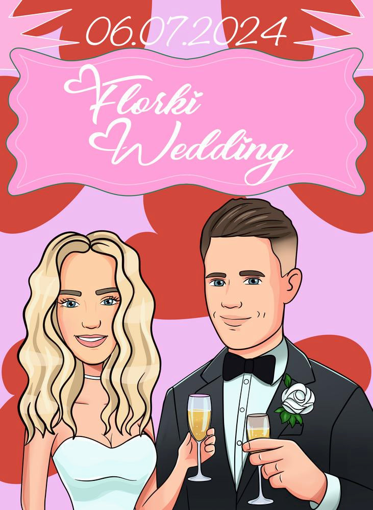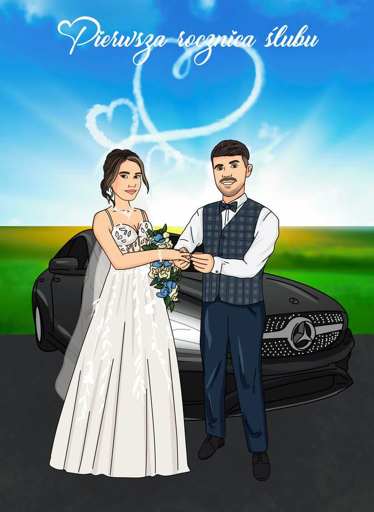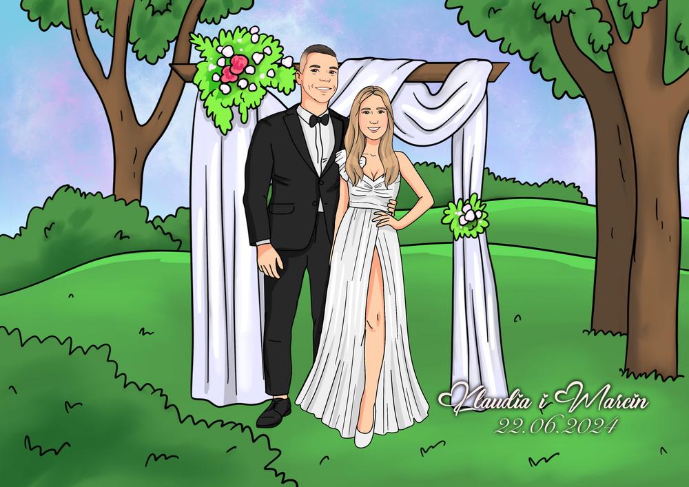 Portret ślubny - kreskówkowy personalizowany obraz na wesele