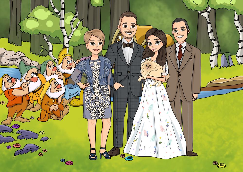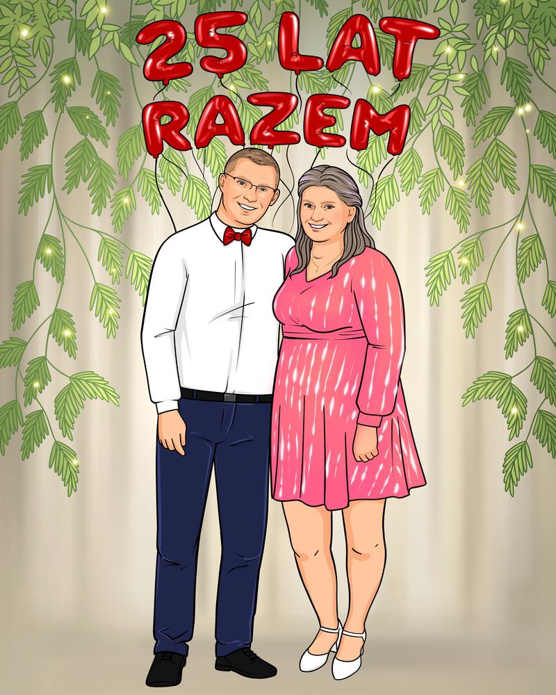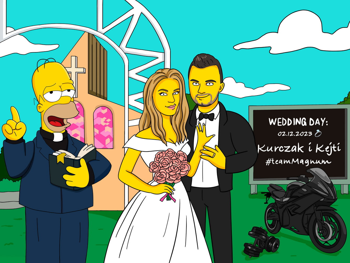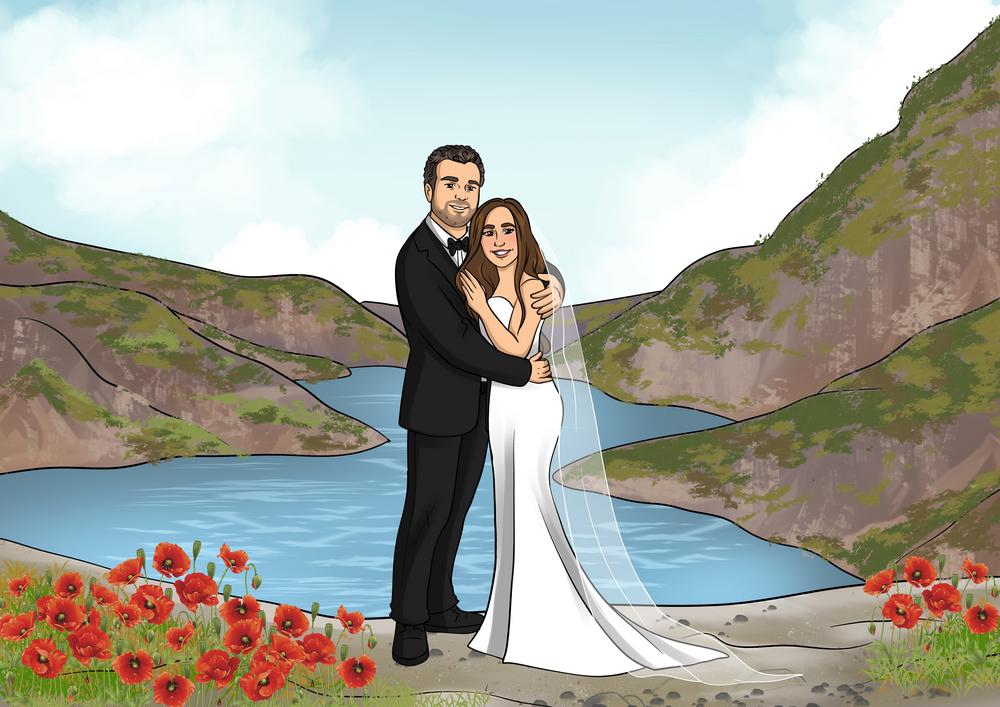 Portret ślubny - kreskówkowy personalizowany obraz na wesele