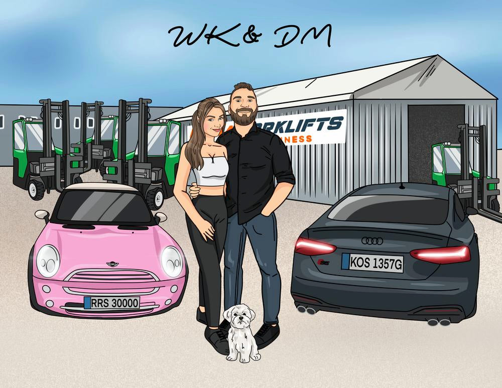 Wybierz rodzaj portretu (tylko wersja elektroniczna lub z nadrukiem), liczbę osób, zwierząt, samochodów oraz inne potrzebne opcje. Dodaj opis i szczegóły zamówienia (ubrania, pozy, inne życzenia). Złóż zamówienie. W ciągu 1-2 dni prześlemy Ci obraz na zatwierdzenie lub ewentualne korekty.
