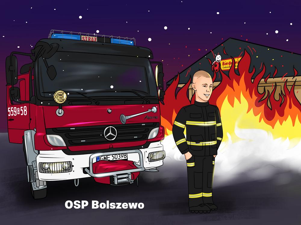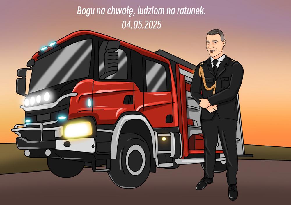 Portret zawodowy, strażacki - personalizowany obraz w stylu kreskówki