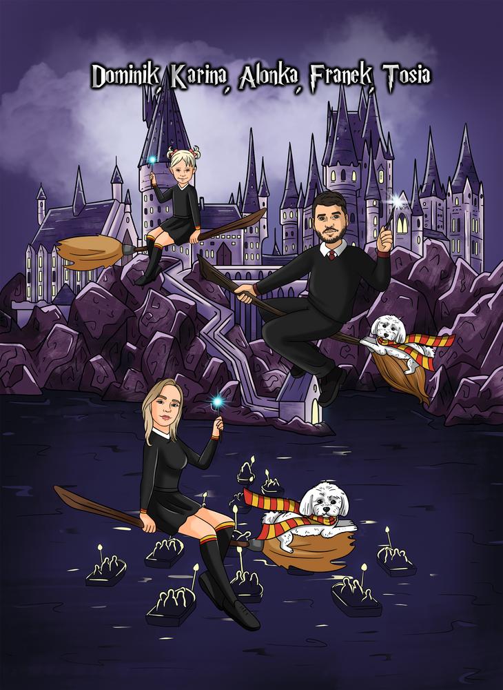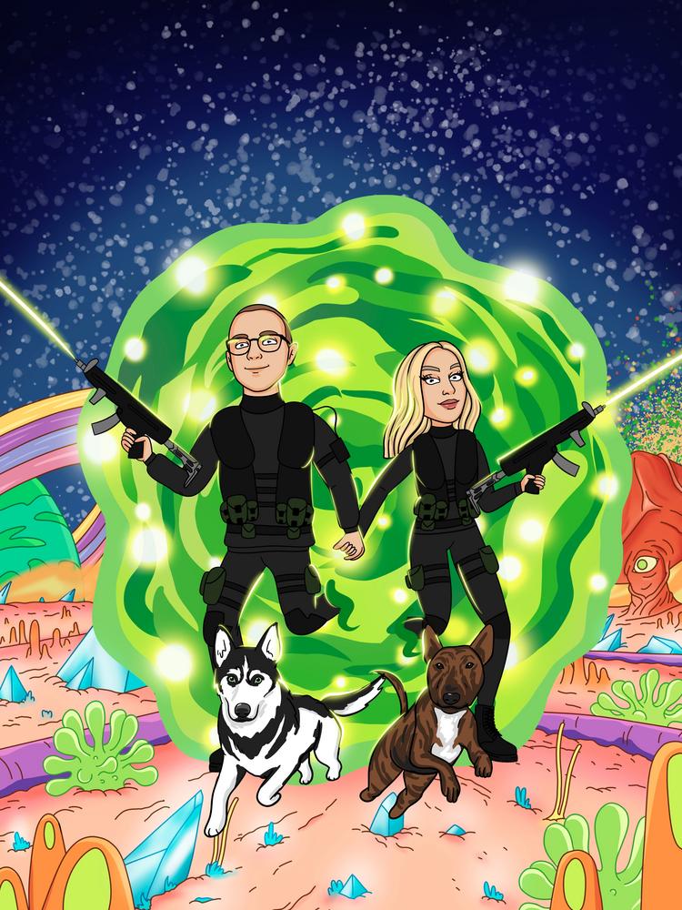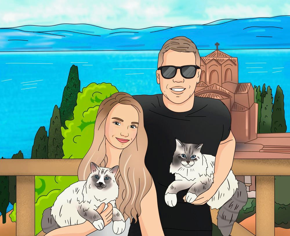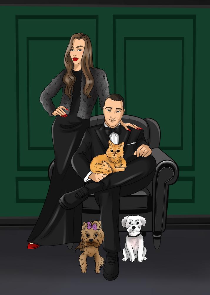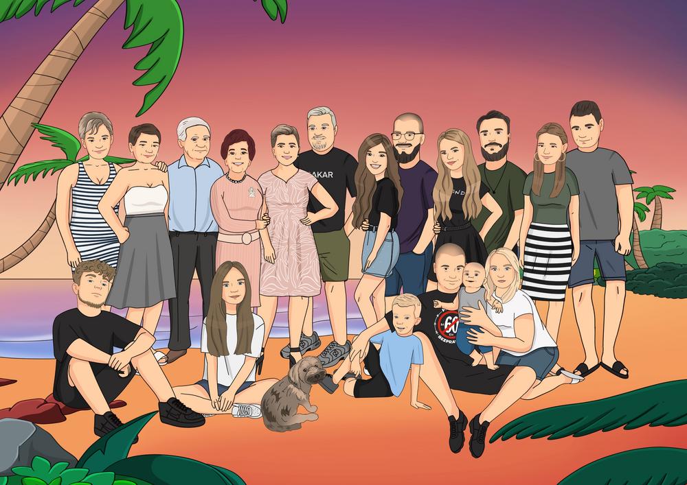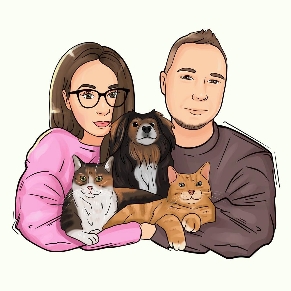 Portret ze zwierzętami - zamów kreskówkowy personalizowany obraz