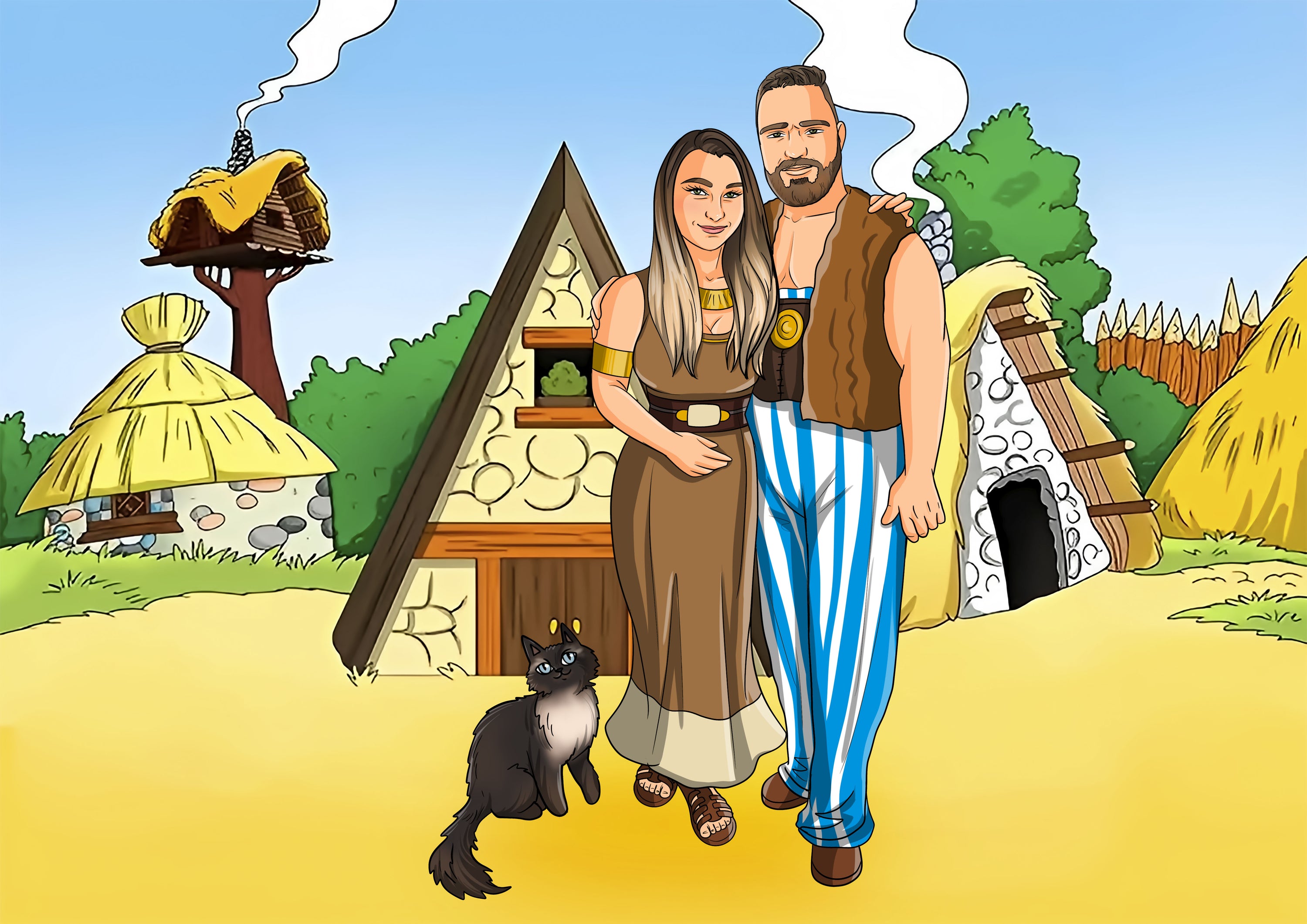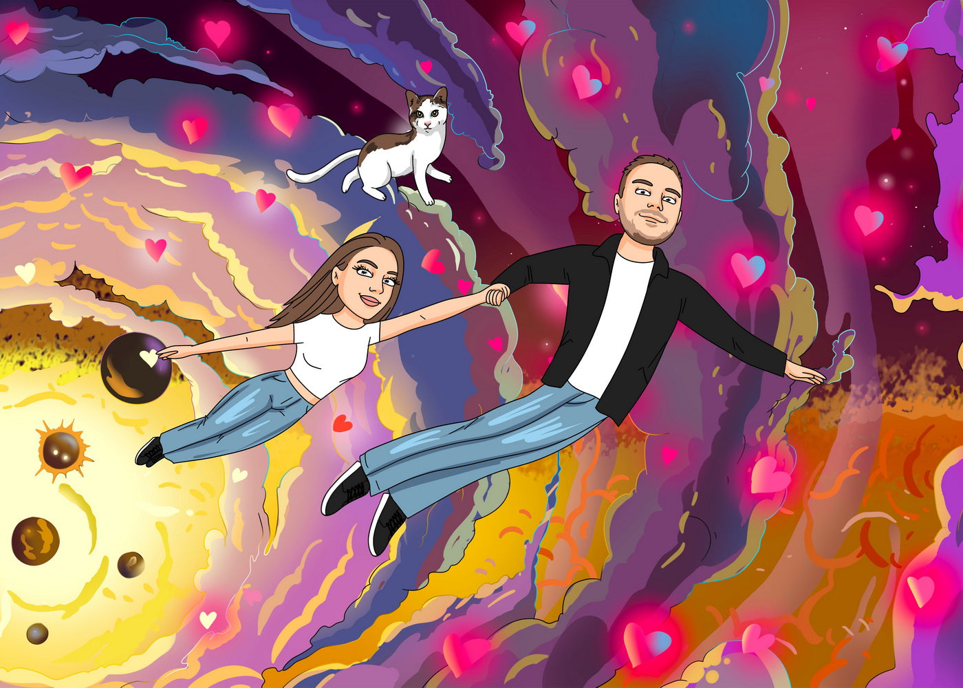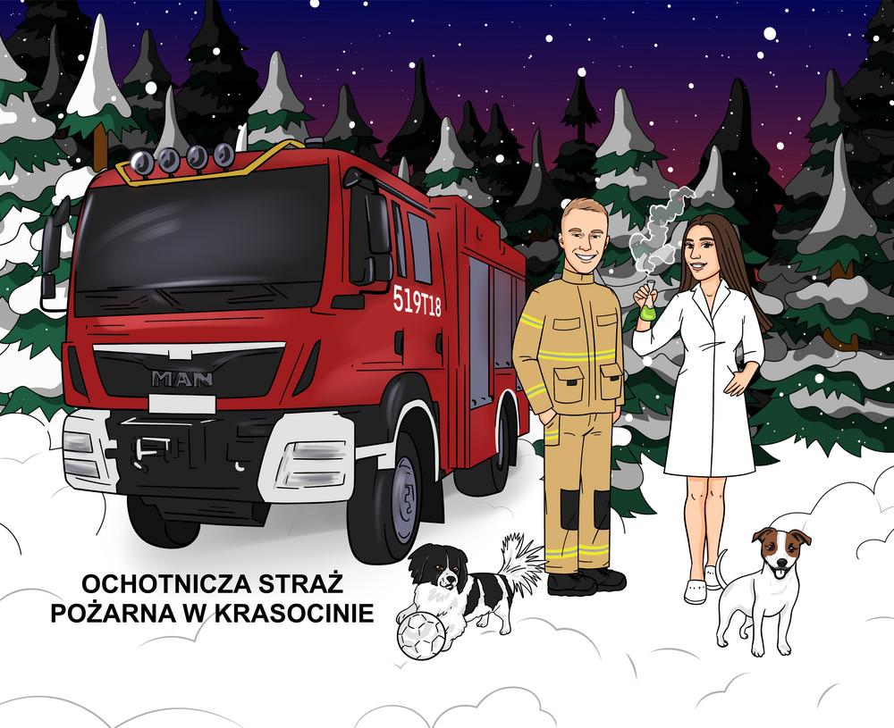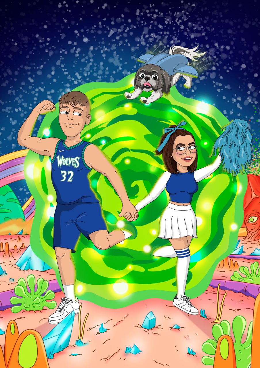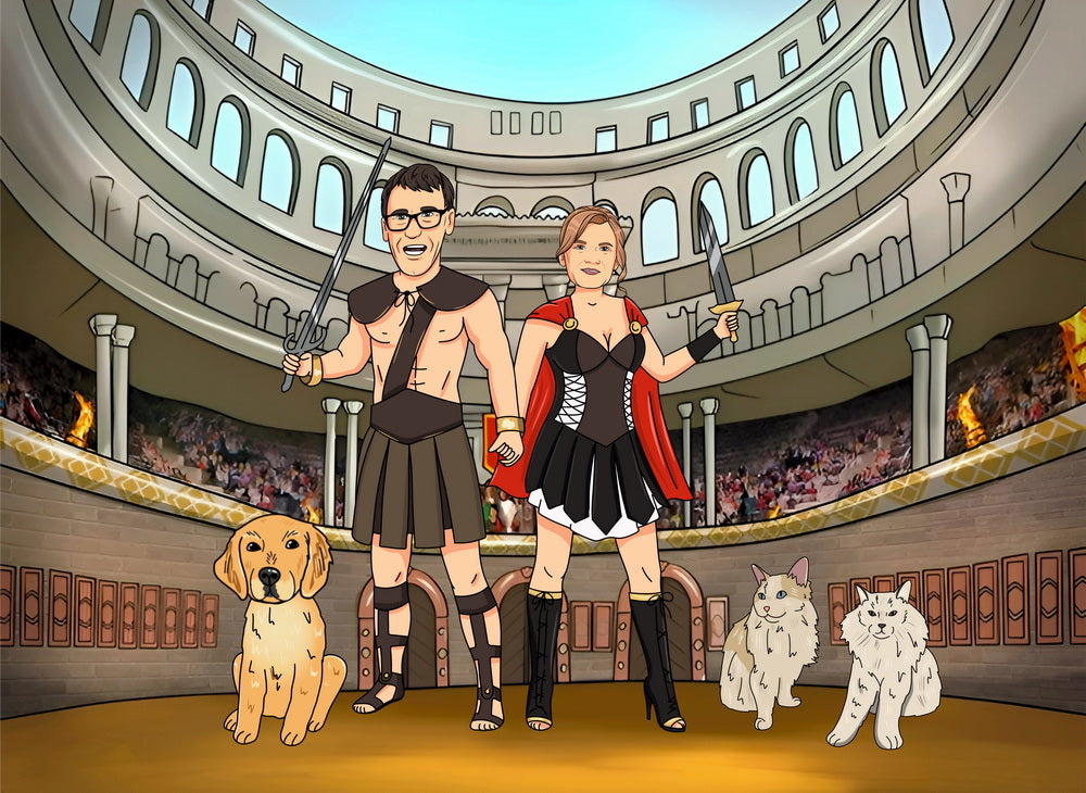 Portret ze zwierzętami - zamów kreskówkowy personalizowany obraz