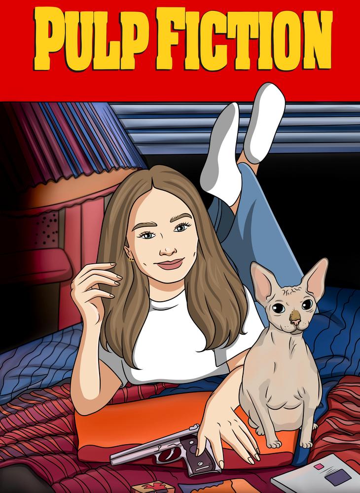 Pulp Fiction - personalizowany obraz, cartoonizowany portret