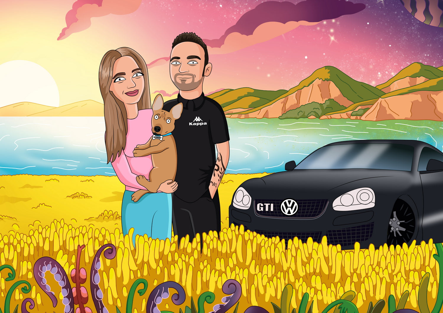 Wybierz rodzaj portretu (tylko wersja elektroniczna lub z nadrukiem), liczbę osób, zwierząt, samochodów oraz inne potrzebne opcje. Dodaj opis i szczegóły zamówienia (ubrania, pozy, inne życzenia). Złóż zamówienie. W ciągu 1-2 dni prześlemy Ci obraz na zatwierdzenie lub ewentualne korekty.