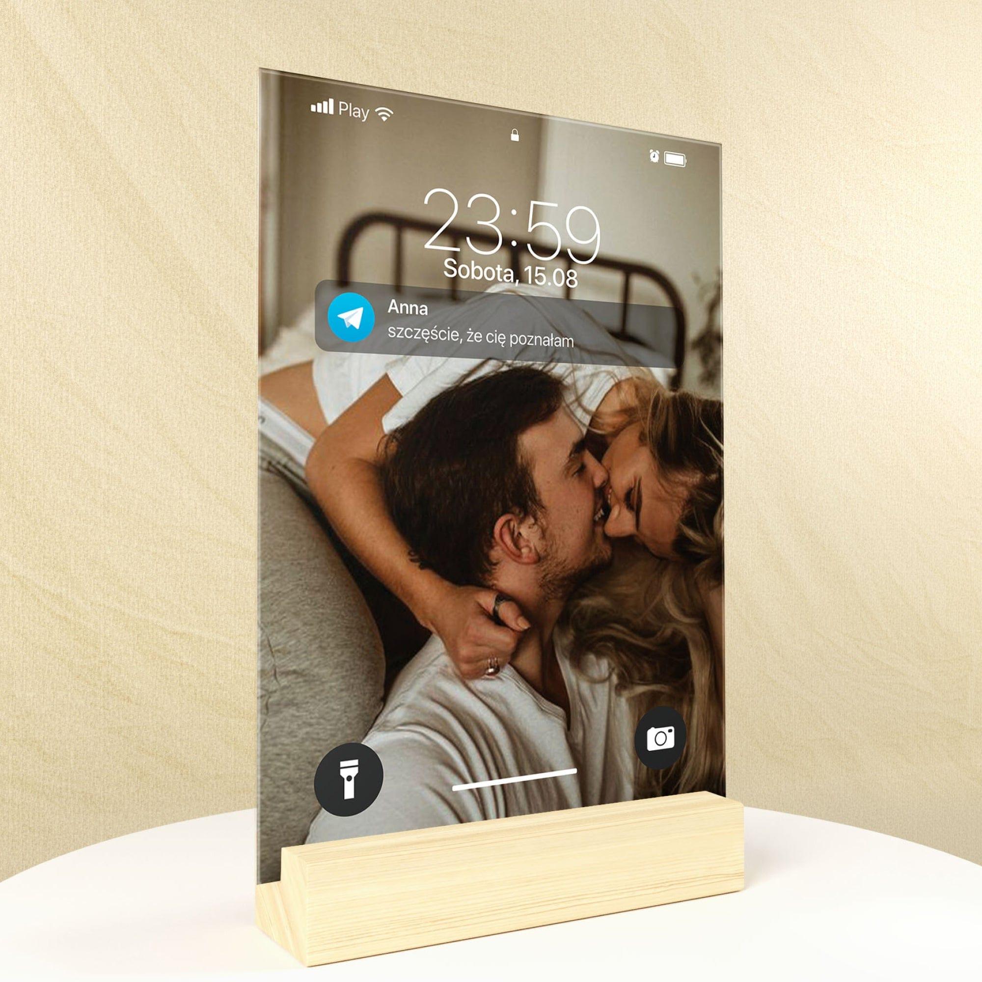 Dzięki eleganckiej, drewnianej podstawce wydruk można od razu postawić na półce. Gwarantujemy, że będzie to świetna niespodzianka dla Twoich bliskich!